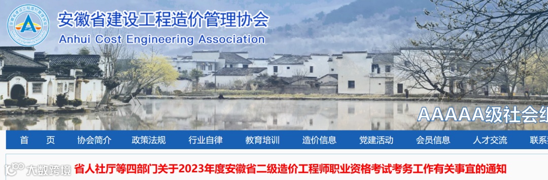 省人社厅等四部门关于2023年度安徽省二级造价工程师职业资格考试考务工作有关事宜的通知