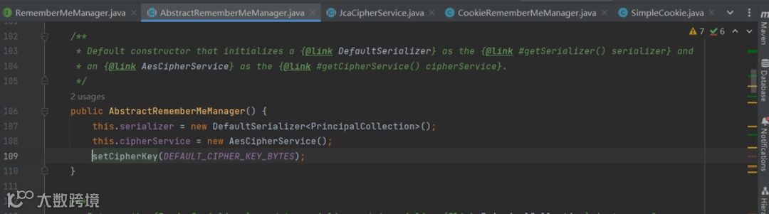查找到AbstractRememberMeManager#setCipherKey
