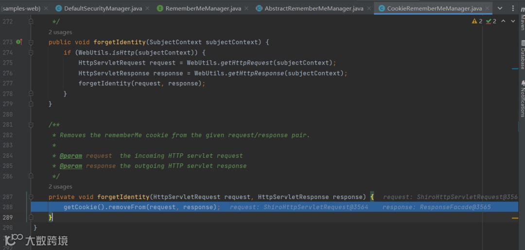 3CookieRememberMeManager#forgetIdentity