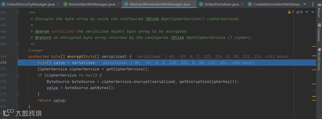 调用原生序列化方法进行序列化,序列化之后,回到convertPrincipalsToBytes()方法进行加密