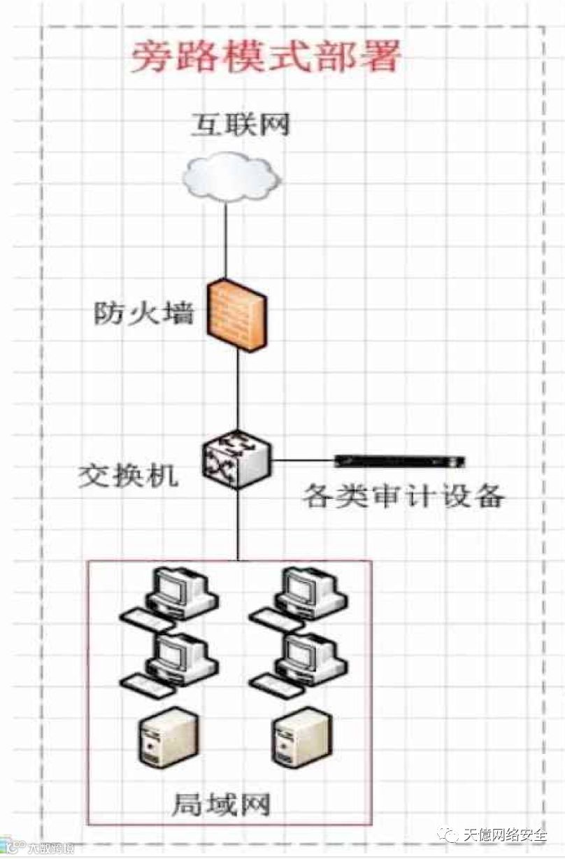 部署:采用旁路部署模式,通过在核心交换机上设置镜像口,将镜像数据发送到审计设备。