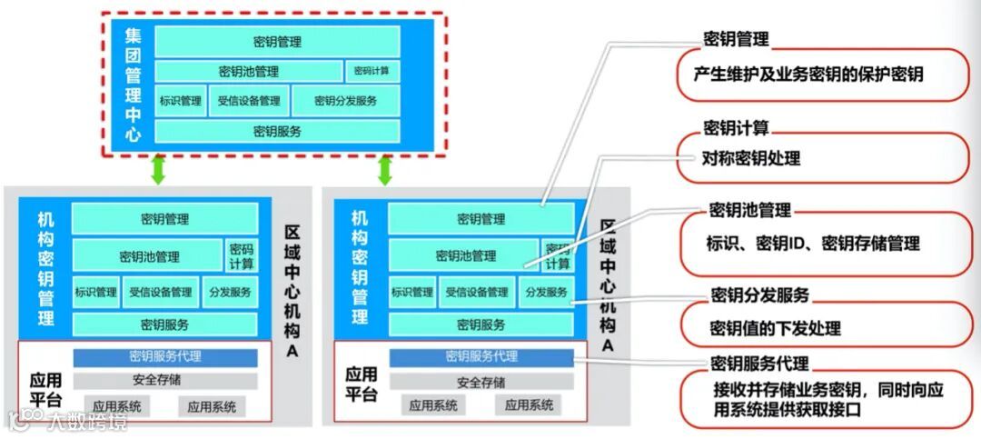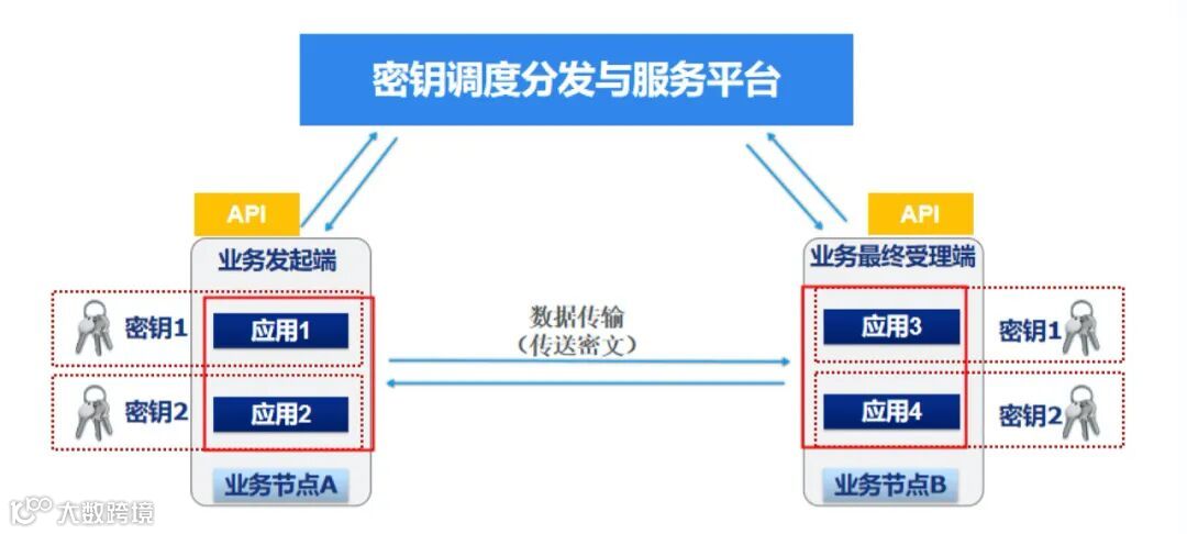 3、密钥调度分发与服务平台定期根据策略安全发放密钥到节点的应用系统。