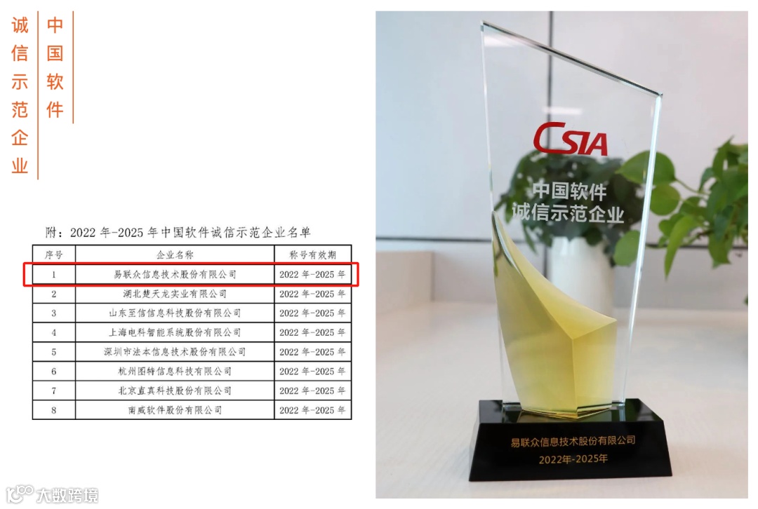 获评“中国软件诚信示范企业”,位列名单榜首
