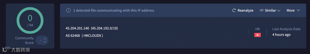 此外,样本C2地址IP归属于中国香港,且该地址并未关联更多样本,推测此次攻击是针对特定企业的定向钓鱼攻击。