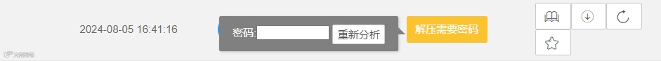 天穹沙箱支持压缩包智能化解压,能够自动尝试解压包含密码的压缩包样本,如果样本密码设置复杂,沙箱将提示用户解压需要密码,用户可将鼠标移动到解压需要密码提示处,如图1所示,在弹出的悬浮框内输入密码,点击重新分析即可,沙箱将使用输入的密码重新分析样本。