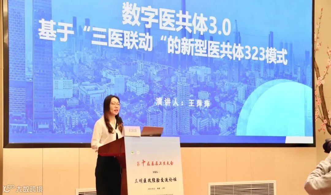 易联众数字医共体解决方案专家王萍萍在10月22日上午的三明医改经验交流论坛上,