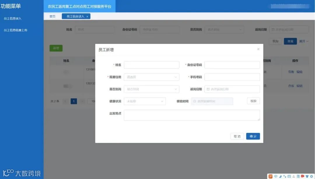 企业登录平台登记职工计划返岗时间、拟出发地等信息