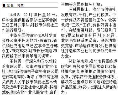 导读:据《淮北日报》图为中华全国总社领导在新供销公司调研(欢迎扫描下方二维码关注淮北新供销微商城)