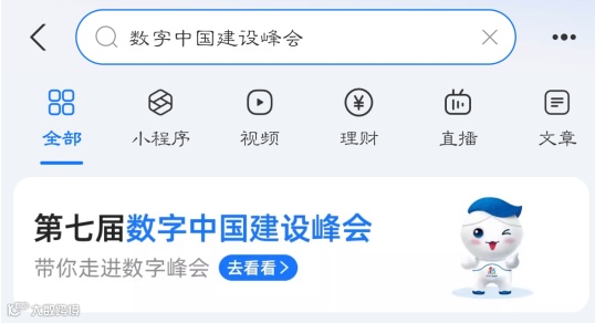1.打开支付宝,搜索“数字中国建设峰会”,或扫码下方二维码,进入“数字中国建设峰会”小程序。