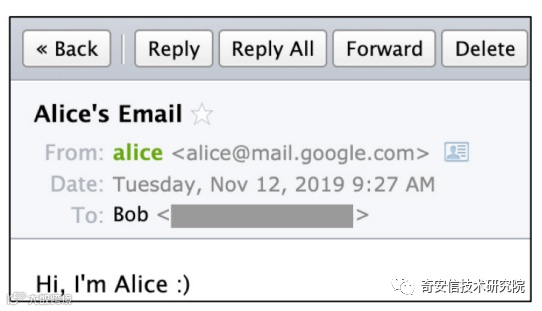 图 1-45 子域名伪造攻击伪造成来自于 alice@mail.google.com 的邮件