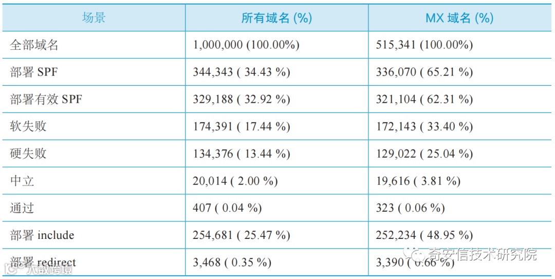 表1-16 SecRank Top 100万域名的SPF配置语法错误情况