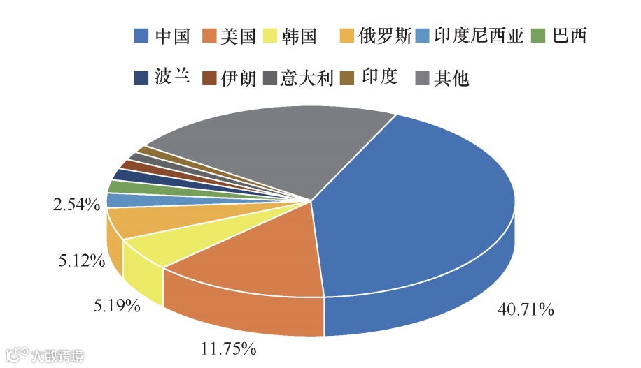 从地理位置的分布情况来看,存在开放递归解析服务器规模最多的5个国家分别是中国(40.71%)、美国(11.75%)、韩国(5.19%)、俄罗斯(5.12%)以及印度尼西亚(2.54%)。详细分布情况如图1-2所示。