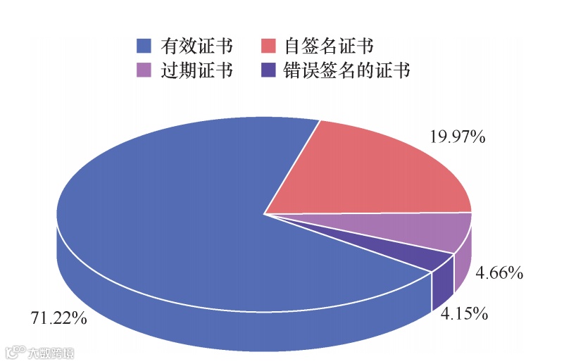截至2020年7月(见图1-5),全球约29%的DoT递归解析服务器使用无效TLS证书。无效证书类型主要包括自签名证书、过期证书和错误签名的证书。其中,自签名证书最为普遍,且多部署于防火墙或TLS流量监控设备。