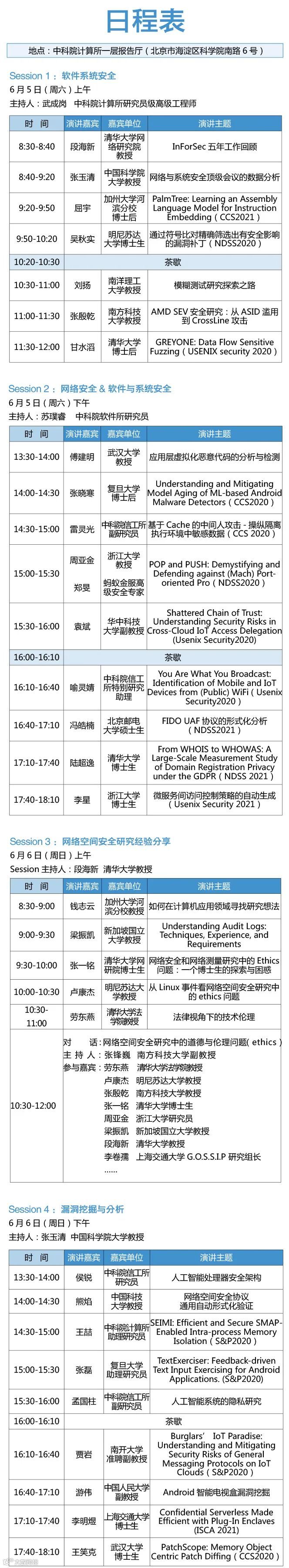 为促进网络空间安全研究的学术交流,了解国际网络空间安全最新学术动态,网络安全研究国际学术论坛(InForSec)将于2021年6月5~6日(周六日)在北京举办“网络空间安全国际学术研究交流会(上)”(后续还有其他活动)。本次学术活动主题为“网络和系统安全”,将重点邀请网络安全、软件和系统安全等相关方向国际最新的研究成果进行交流,分享学者们研究过程中的灵感、经验和体会。