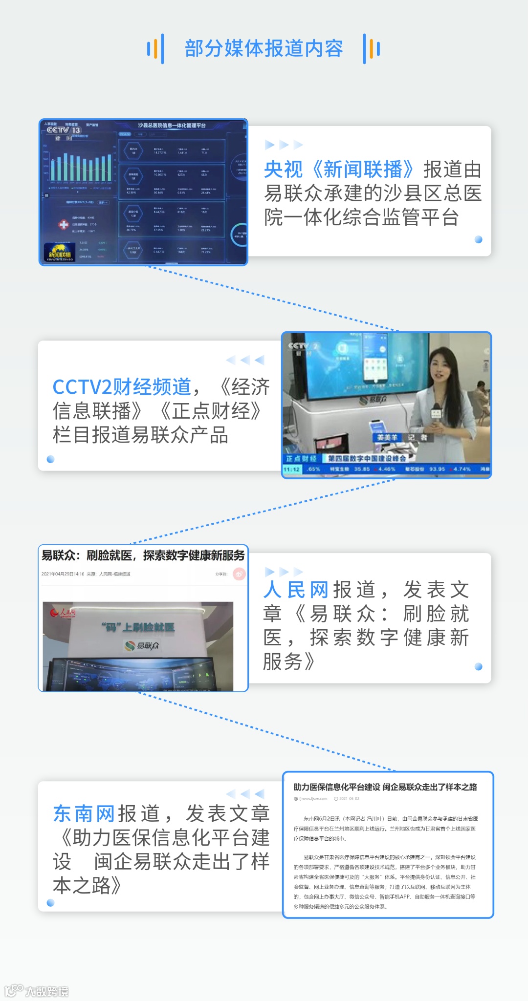 易联众成立于2000年,2010年在深交所创业板上市(股票代码300096),重点围绕人力资源和社会保障、医疗保障、卫生健康等民生领域,专注打造全方位的整体解决方案和产品与技术服务体系,致力于以数字化重塑民生健康新生态。