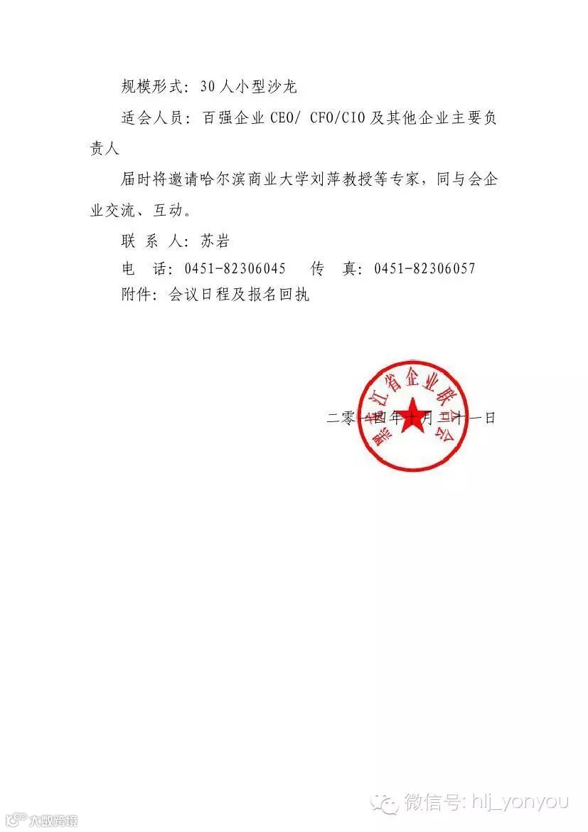 2014年10月29日,黑龙江省企业联合会与用友公司将共同举办“企业财务共享服务及管理会计主题沙龙”,邀请共享服务领域及管理会计领域的知名专家和企业实践者一起分享、交流。
