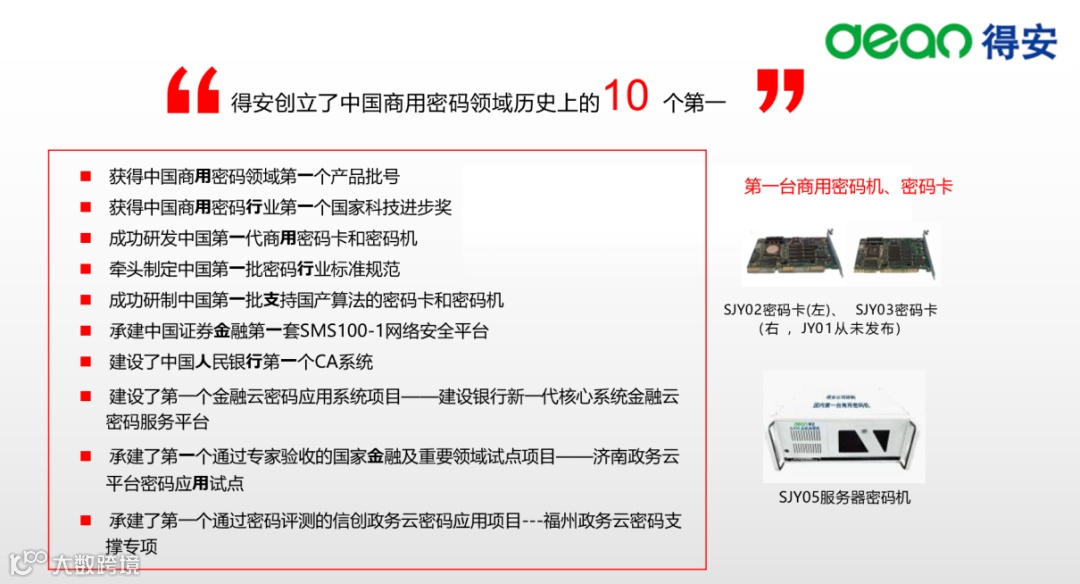 得安创立了中国商用密码领域历史上的10 个第一