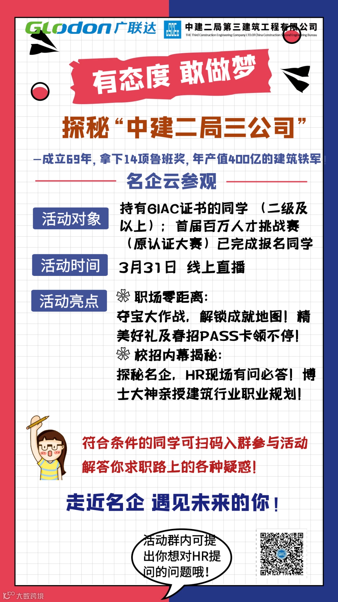 对持有GIAC二级及以上等级证书同学的就业赋能服务中的名企参观活动,现对已成功报名大赛的同学们开放!