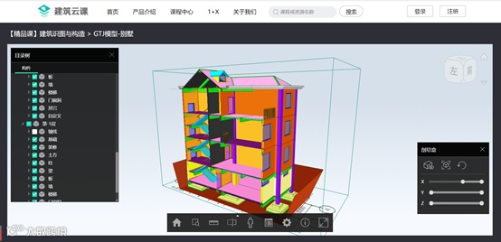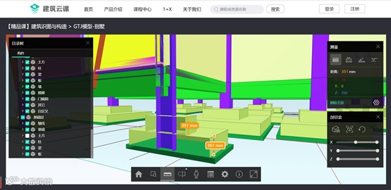 广联达建筑云课内一门全新的精品课《建筑识图与构造》可以帮上您的大忙!课程内可载入三维模型,老师与学生均可在脱锁状态下,在课前、课中、课后通过云课手机端及电脑端完成对模型的自由操作(剖面、旋转、测距、三维等),实现“所想即所见,所见即所得”的三维教学场景,加深学生对知识点的理解,从而提升教学效率!