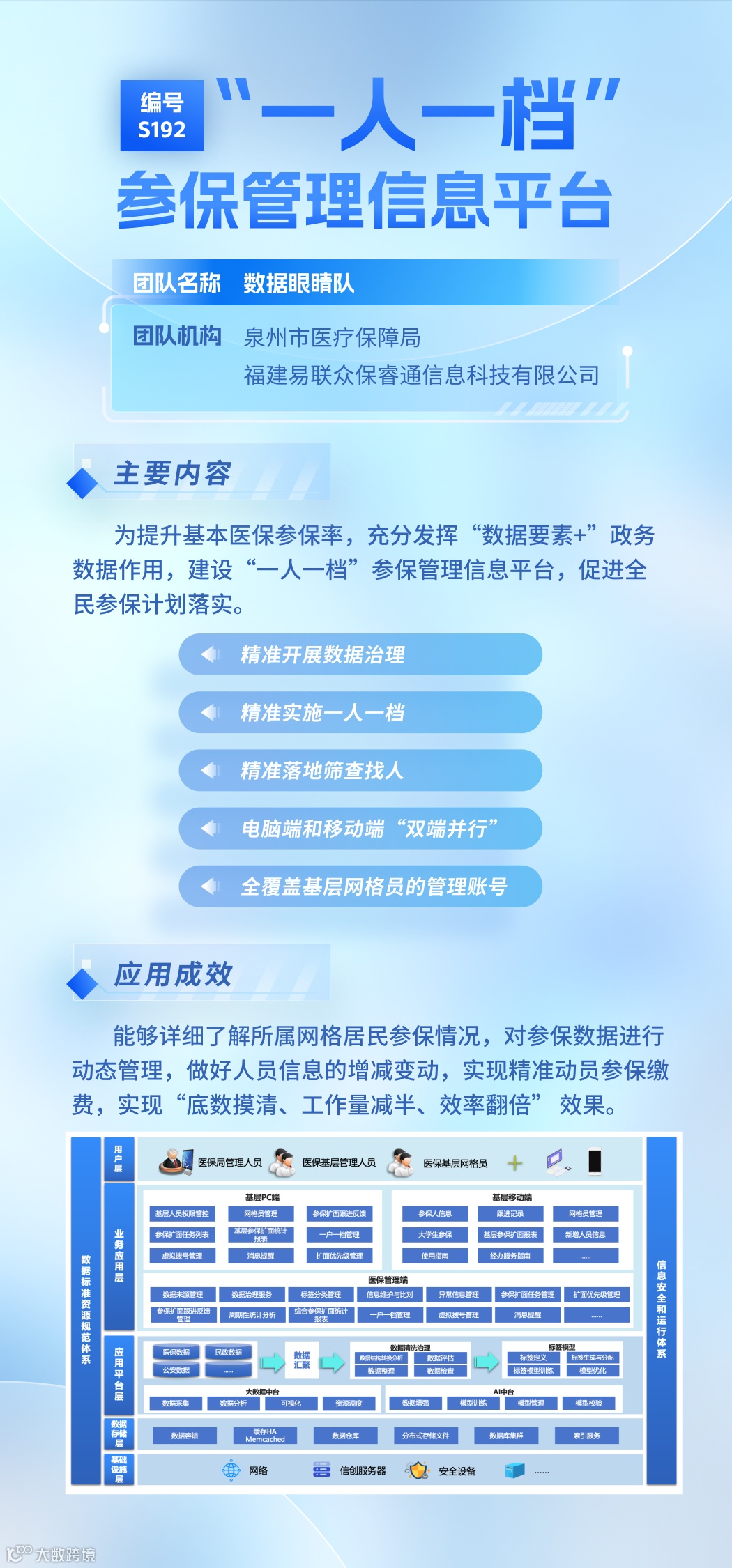 由易联众保睿通公司助力的泉州市医疗保障局《“一人一档”参保管理信息平台》智慧医保解决方案,旨在提升基本医保参保率,充分发挥“数据要素+”政务数据作用,促进全民参保计划落实。该平台能够详细了解所属网格居民参保情况,对参保数据进行动态管理,做好人员信息的增减变动,实现精准动员参保缴费,实现“底数摸清、工作量减半、效率翻倍”的效果。