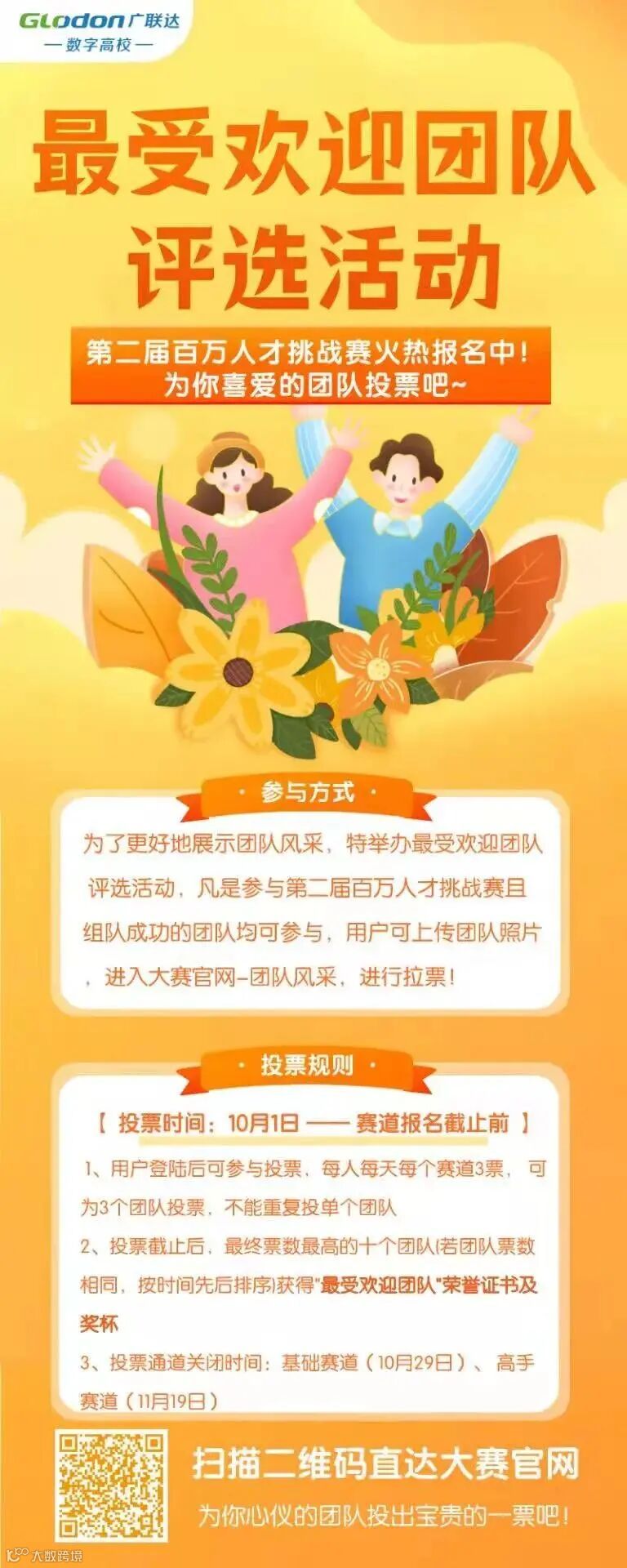 投票截止后,最终票数最高的十个团队(票数相同,按时间先后排序)获得最受欢迎团队荣誉证书及奖杯