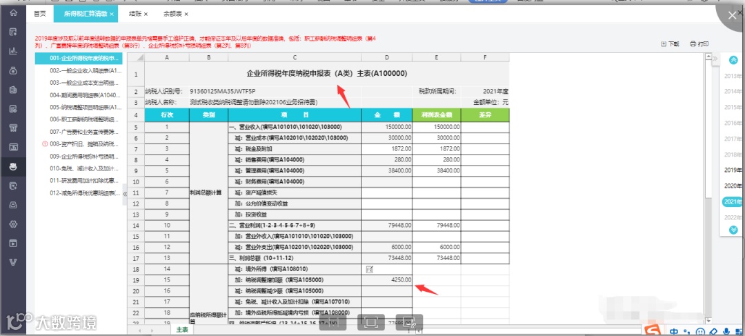 2、所得税汇算清缴表如何自动计算出调增金额