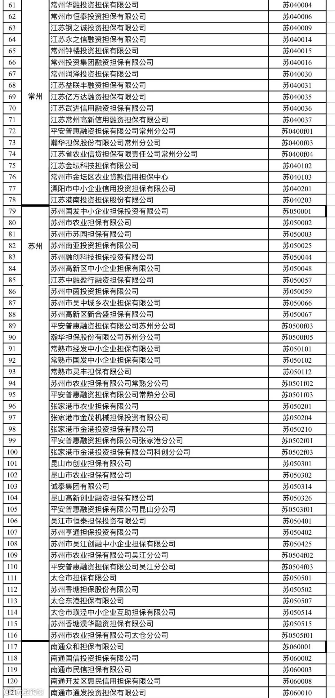 附件:江苏省融资担保公司名录