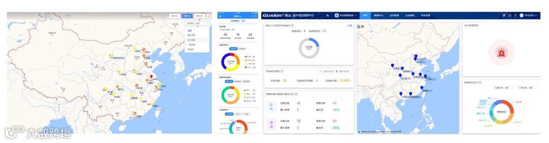● 企业安全地图,快速定位项目、风险、隐患分布,主动预警,防患未然;