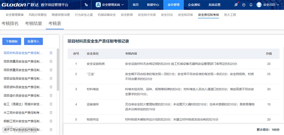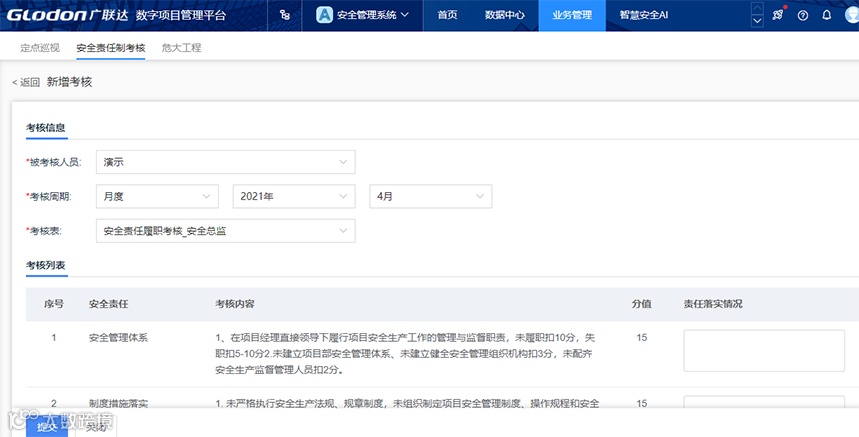 ● 实现企业对下级单位安全管理人员责任制考核、履职评价,统一标准、管理直观、考核透明、自动排名。