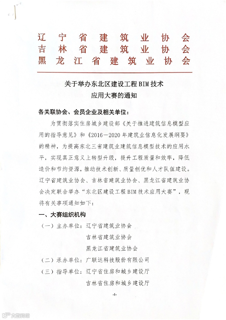 关于举办东北区建设工程BIM技术应用大赛的通知