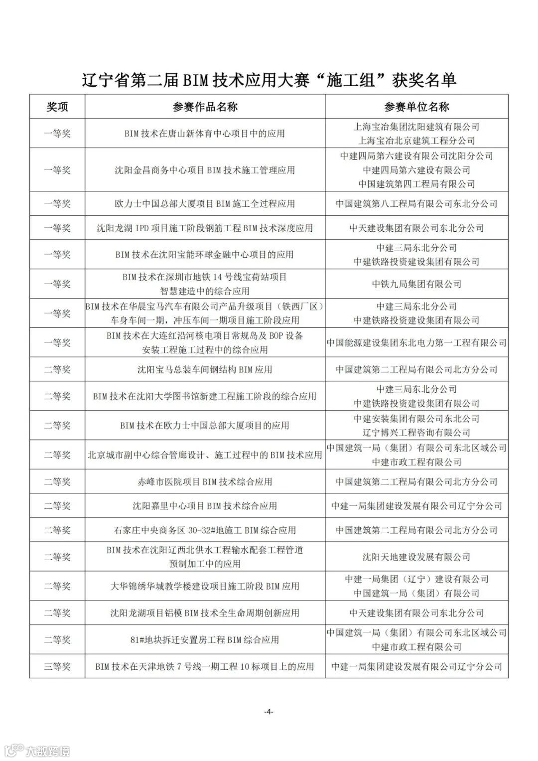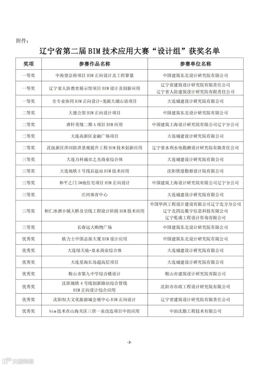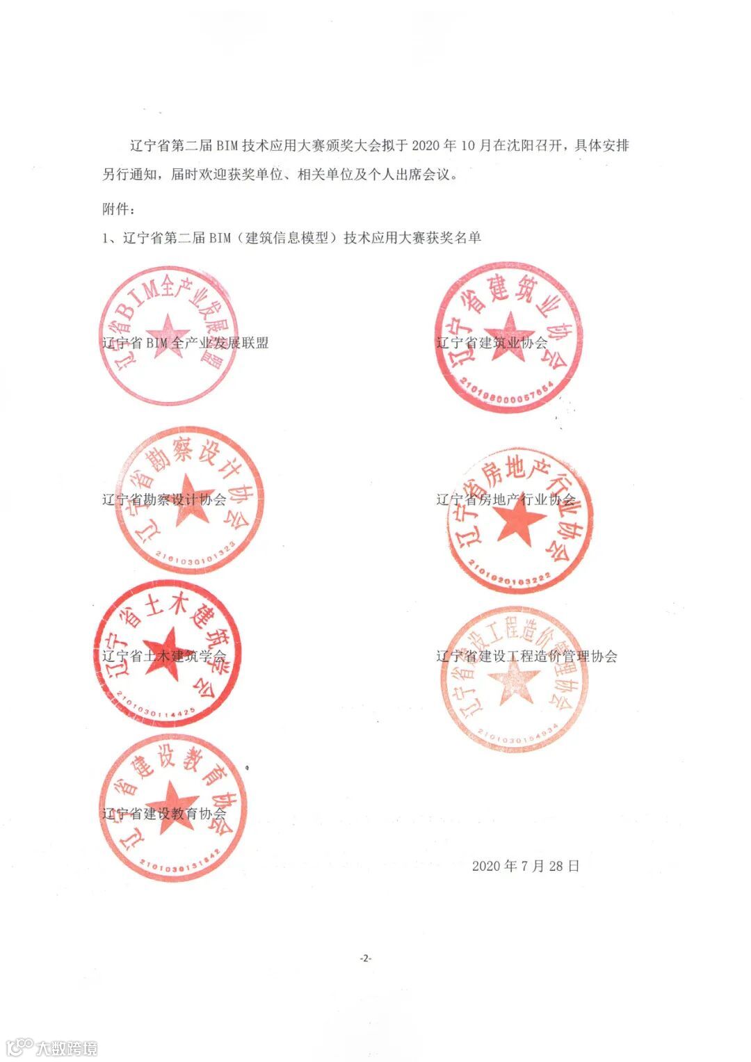 关于公布辽宁省第二届BIM(建筑信息模型)技术应用大赛 获奖名单的通知