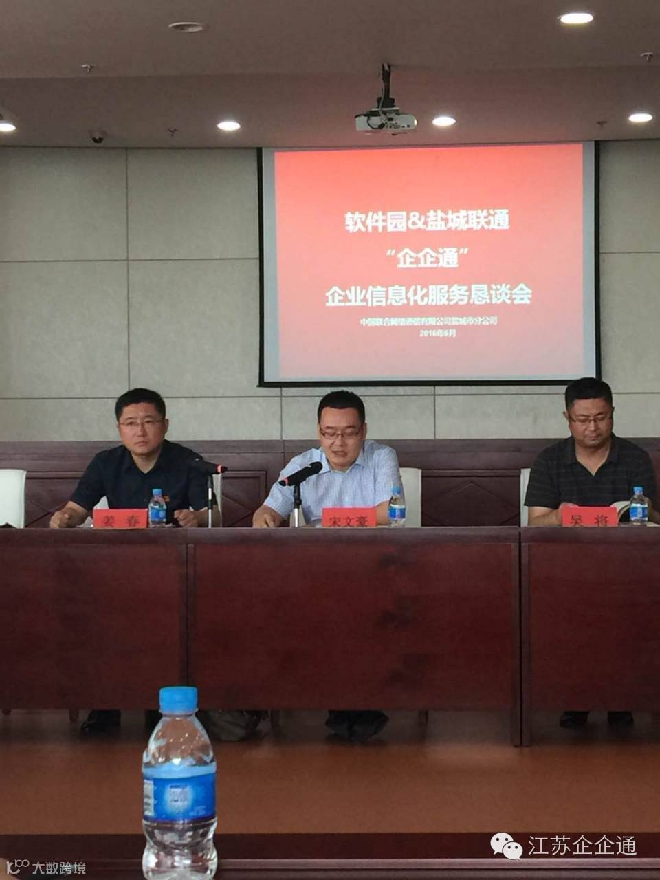 为进一步落实“企企通”推进要求,6月15日上午,盐城联通于开发区软件园召开软件园&盐城联通“企企通”企业信息化服务恳谈会,软件园负责人吴将主任和盐城联通宋文豪副总经理出席会议,园区内15家重点企业负责人参加了会议。
