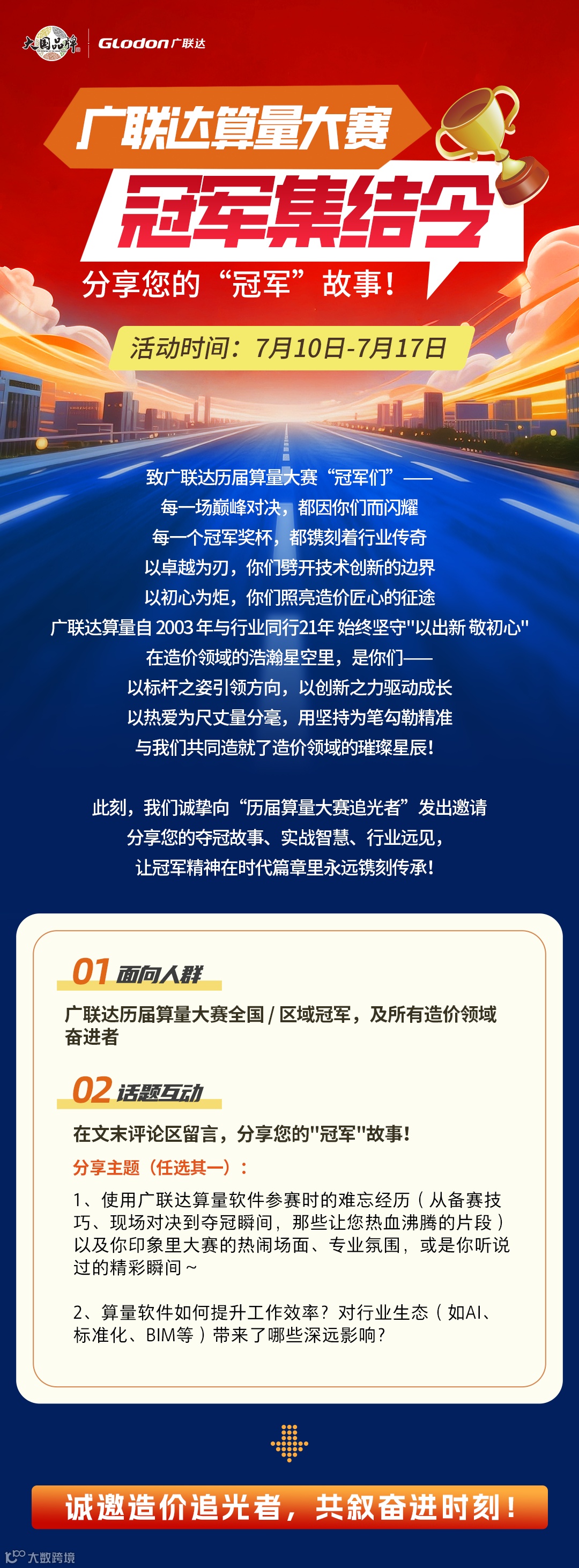 广联达发布算量大赛「冠军集结令」,以匠心故事,共话初心!
