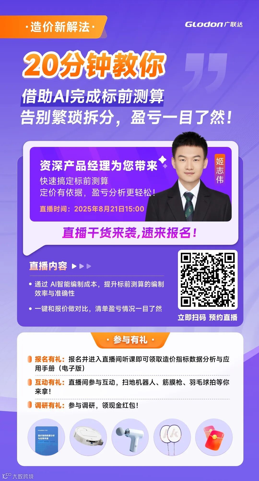 广联达成本测算核算一体化解决方案,用数字化穿透作业场景,邀请标杆企业现身说法,化解工作中的每个难题,让每个项目从“算不准”到“算得赢”。
