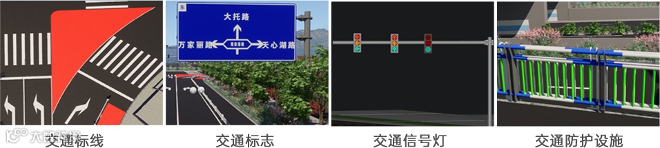 应用点3:在绘制道路板块时智能生成交通标线。交通标志根据标准化模自动拾取布置,也可灵活创建标志版面、布置信号灯组合、交通电子警察、视频监控等,实现多标合一的应用场景。