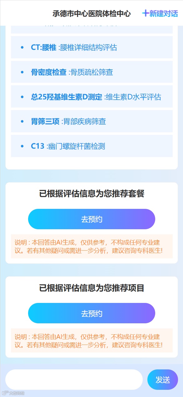 构建疾病-检查项目关联网络,确保推荐符合医学指南(如《健康体检基本项目专家共识》)。