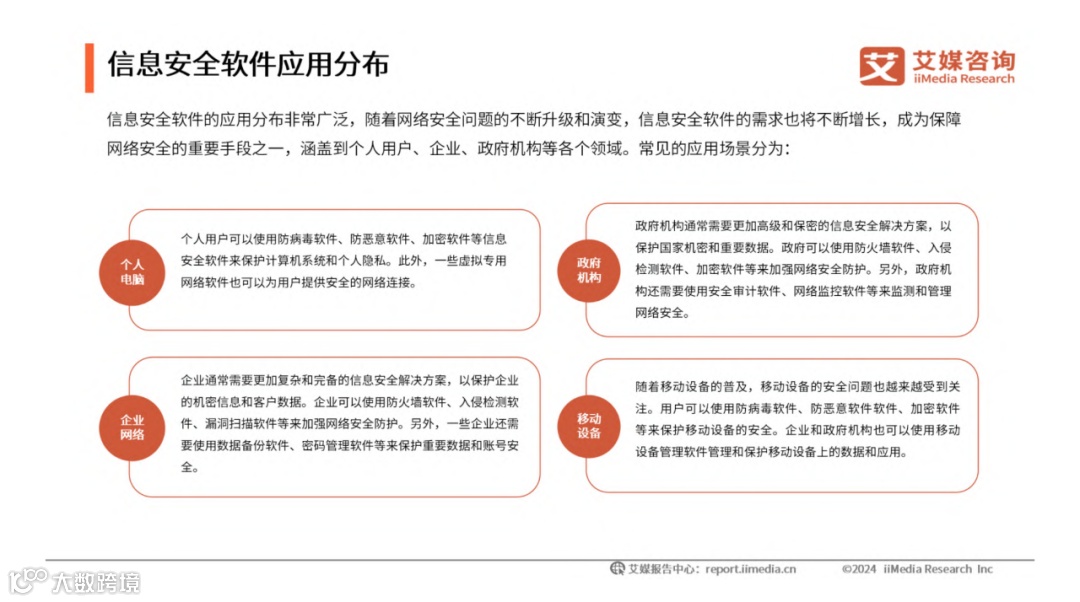 2023年中国信息安全软件行业市场规模达147.0亿元。艾媒咨询分析师认为,政企组织对安全软件的需求逐步扩大,安全软件的需求逐步向商业客户扩大,企业在安全服务方面的预算有望大幅提升,进一步促进信息安全软件市场的增长。