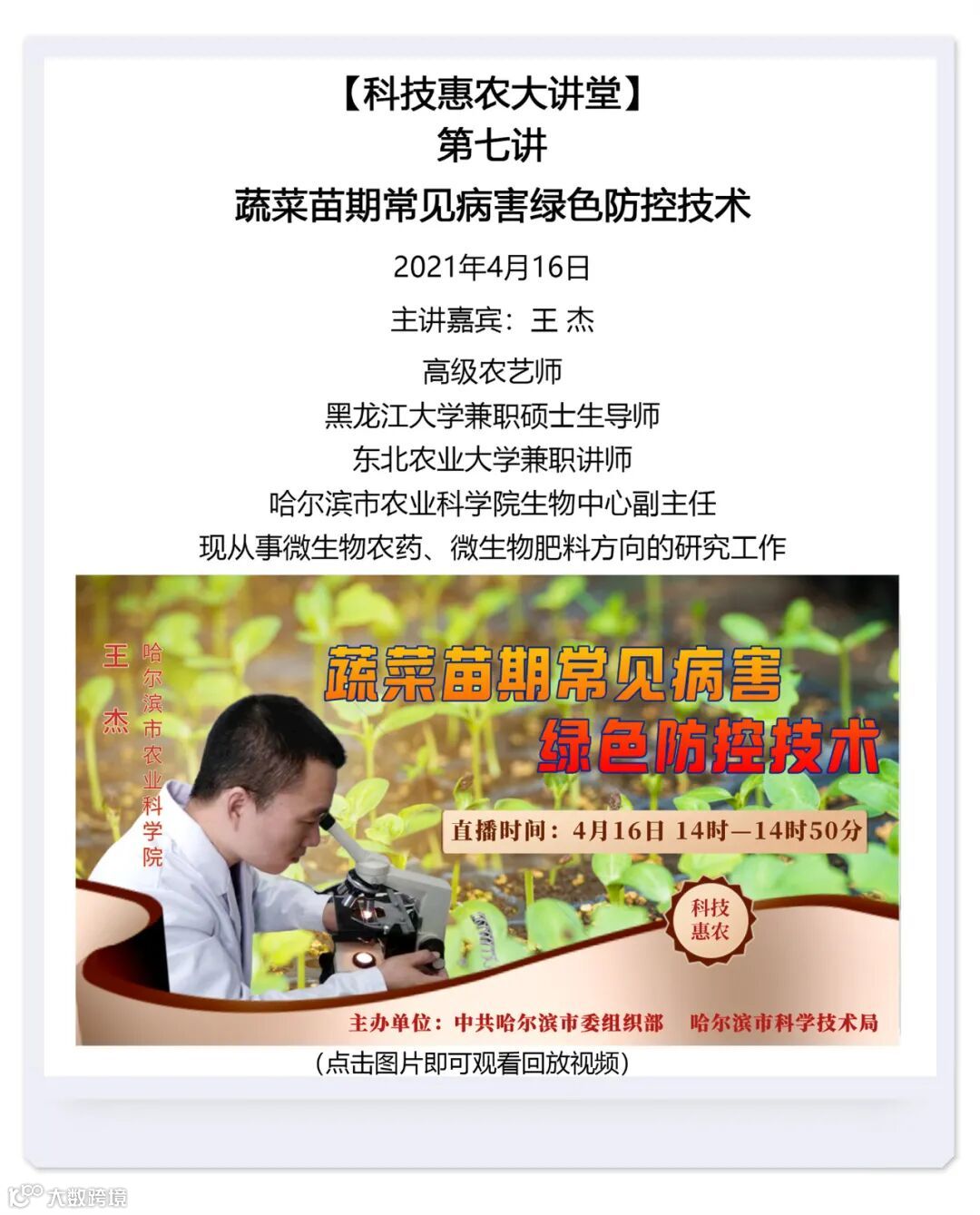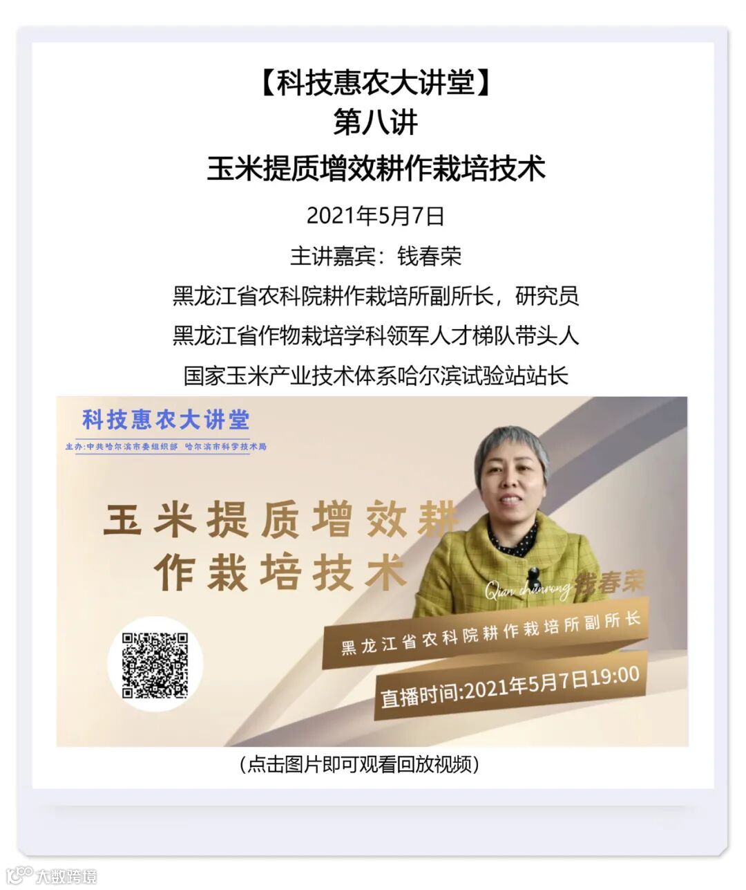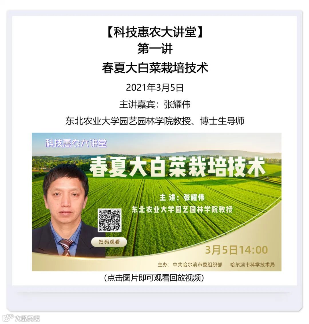 本期汇总了自哈尔滨科技惠农大讲堂开播以来的直播回放视频。