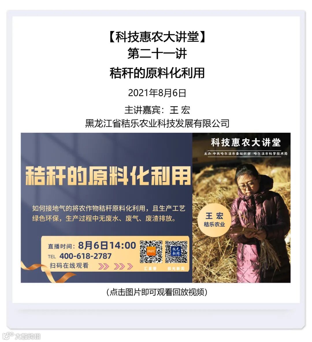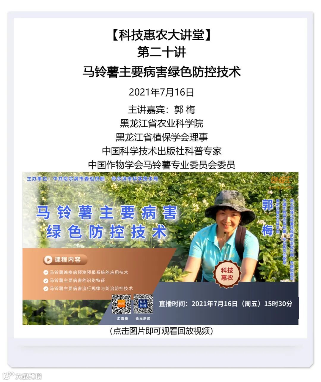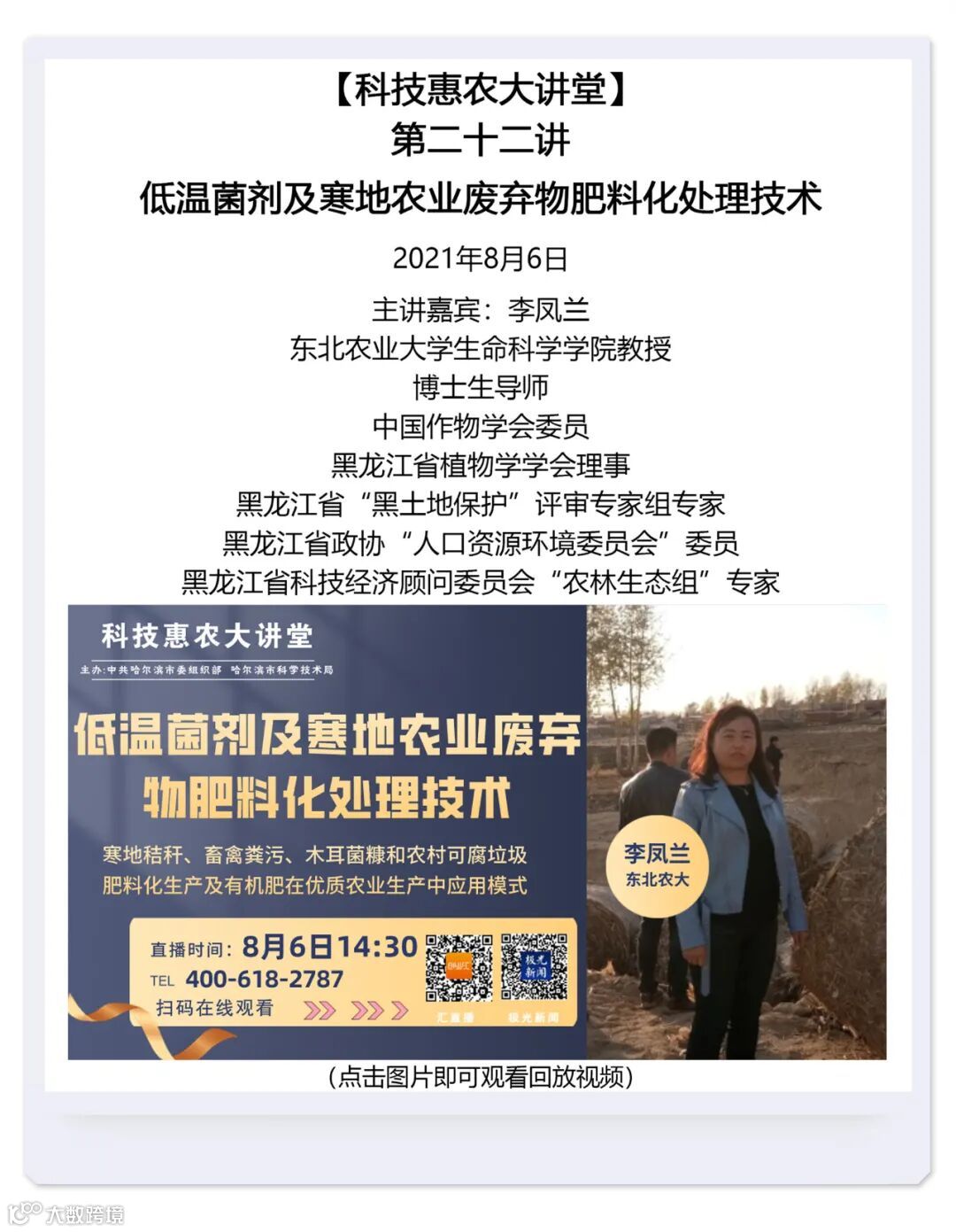 本期汇总了自哈尔滨科技惠农大讲堂开播以来的直播回放视频。