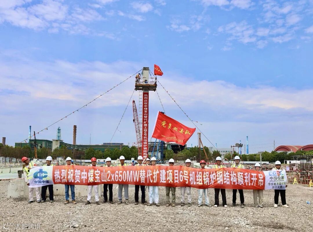 钢柱擎天起栋梁,熔炉淬炼铸华章。9月1日,由中国能建中电工程华东院牵头总承包的中煤宝山2×65万千瓦超超临界煤电(煤气掺烧)替代扩建项目(以下简称中煤宝山项目)6号机组锅炉钢架顺利开吊,标志着6号机组锅炉安装工作全面启动。这是本项目正式开工后首个重要里程碑节点。