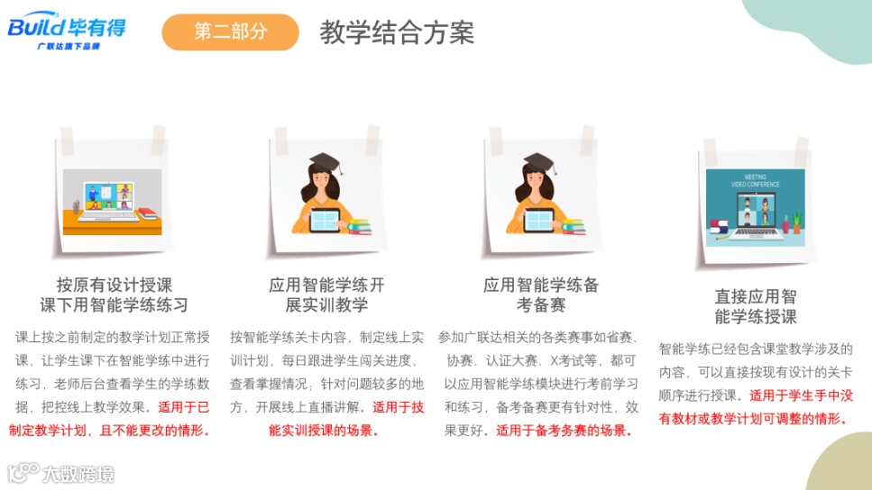 1、升级拓展的学练资源:减少老师挖掘、设计、开发多样化,面向岗位的满足X证书的升级资源的精力。设计了挑战目标的学习路径的学练及丰富的考试资源,匹配一定行业拓展性资源及专家直播。