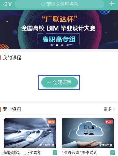 (1)新建课程。点击“创建课程”按钮,编辑课程名称,选取课程封面,完成即可。