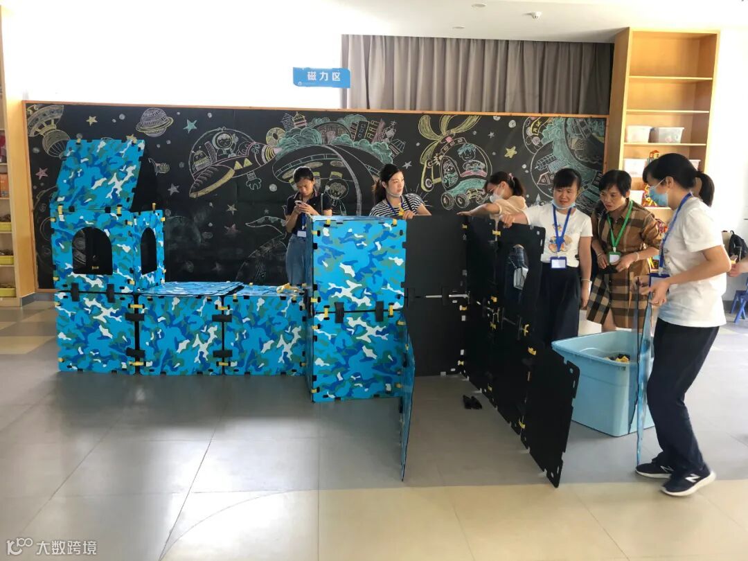 专家培训结束后,紧跟着便进入了幼儿园STEM玩教具实操环节。在本环节,参加培训的教研员、园长们亲自体验了由孩教圈提供的STEM国防主题游戏、STEM传统文化主题游戏、STEM魔镜游戏等大型STEM玩教具。