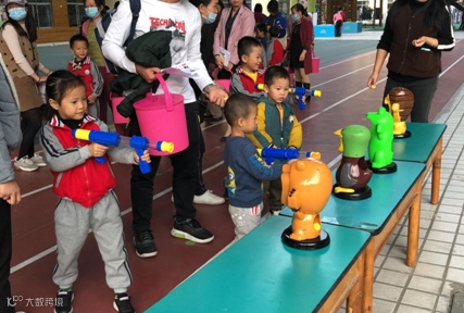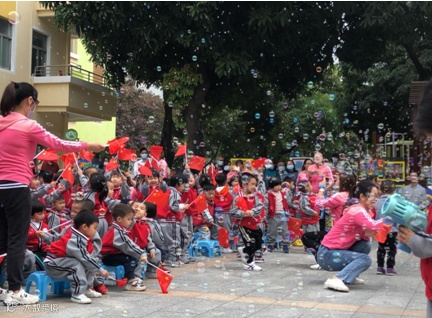 随着黄园长宣布本次活动正式开始,空气炮快速地喷出了一圈又一圈的白色烟雾,宣告开幕仪式正式开始。