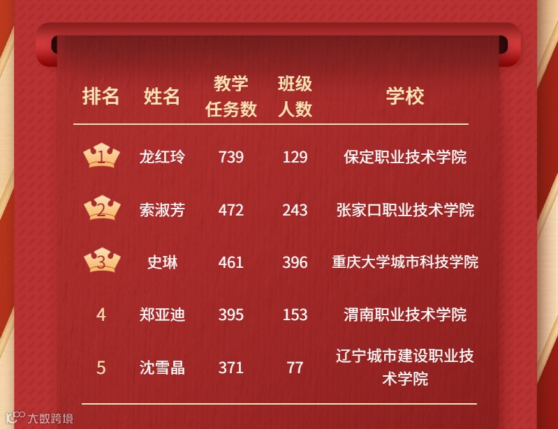 以下为单任务发布次数前五教师获奖名单,可获得百元精美奖品一份,请获奖老师点击下方链接填写您的邮寄地址,方便奖品发放: