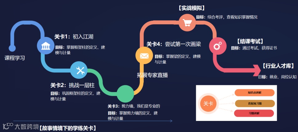 每个关卡提供知识点学习视频、配套的实操练习题及满分讲解视频,节省老师线下辅导的精力投入。