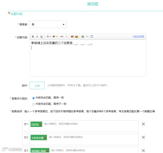 习题题干支持添加图片、表格,还可添加图纸等题目附件!