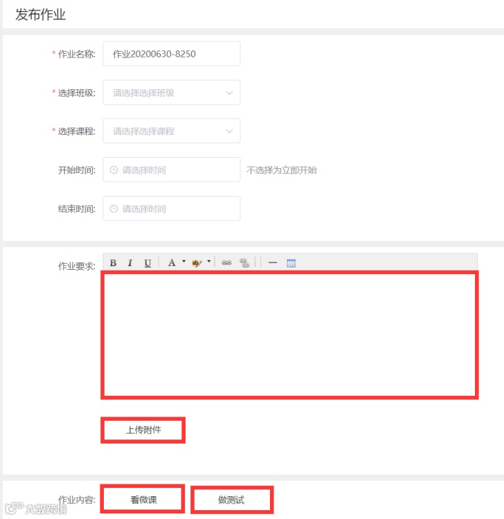 您可以在作业里发布多种形式的作业要求、上传附件、看微课及做测试!