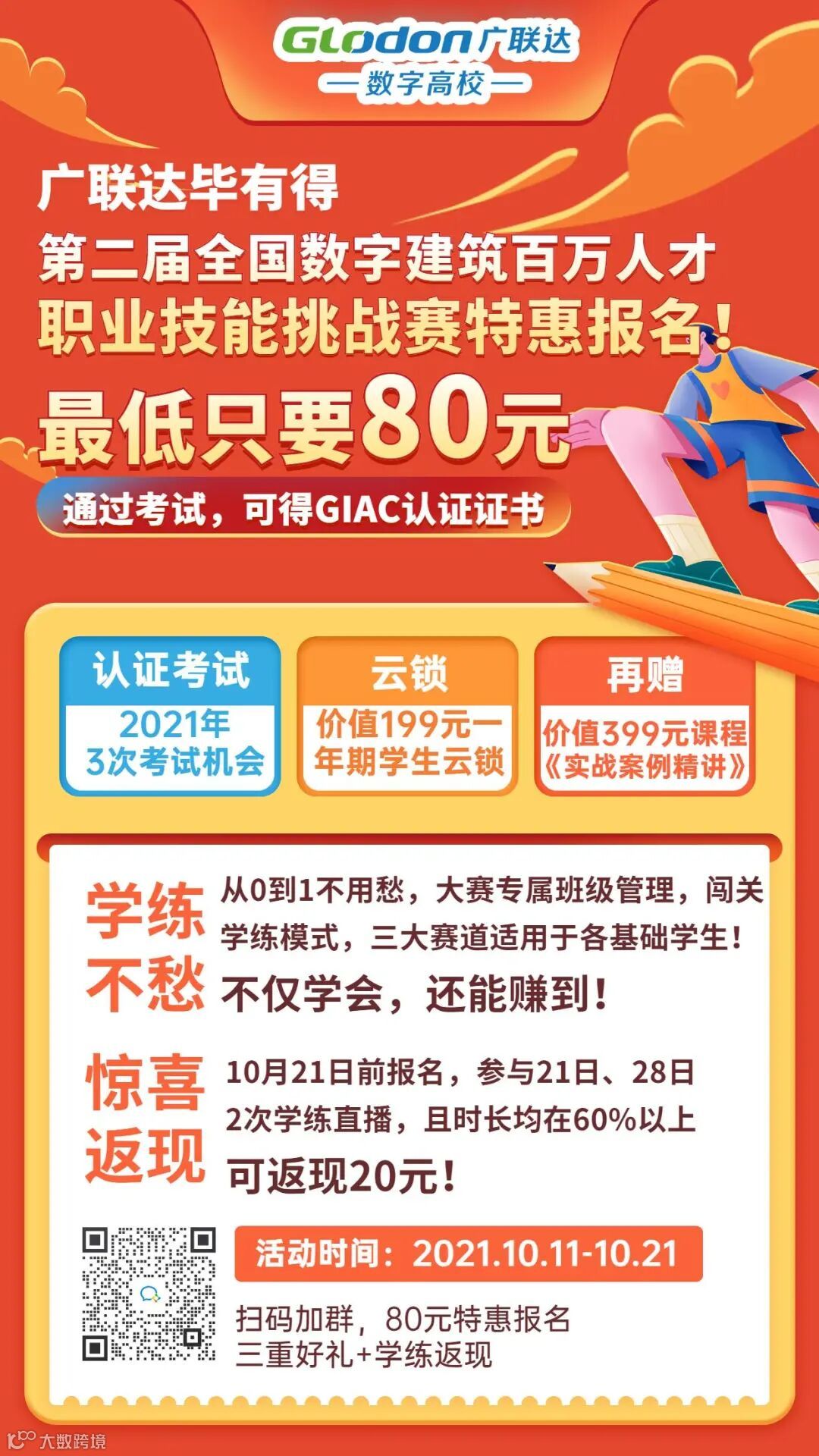 GTJ/BIMSD认证原价180元,营内报名80元 含:2021年年内3次考试机会+原价399元《实战案例精讲》+原价199元“一年学生云锁”+完成学练直播可返现20元