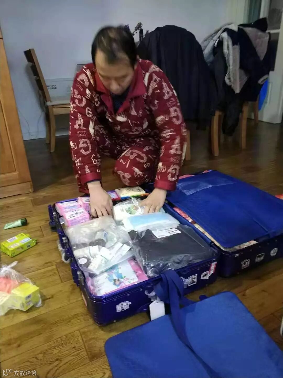 周瑛连夜赶到家已是凌晨2点。老公让她睡觉,列好清单能带的就带,自己帮妻子整理好行李到凌晨6点,第二天清晨开车送妻子到医院集合。